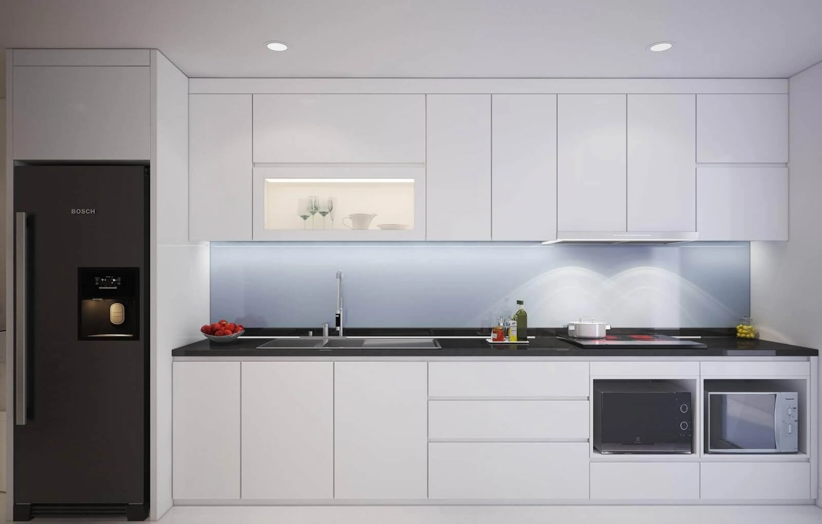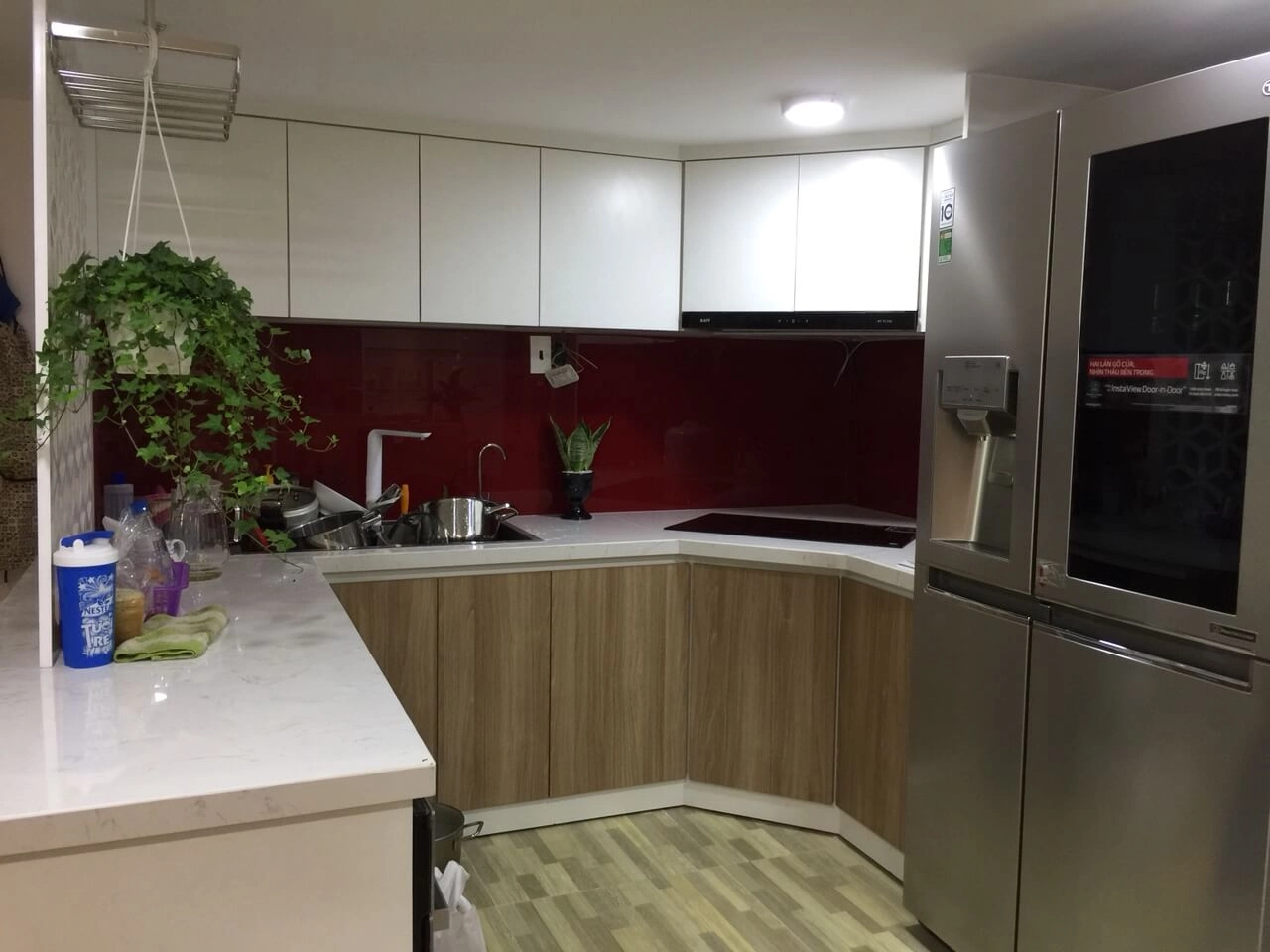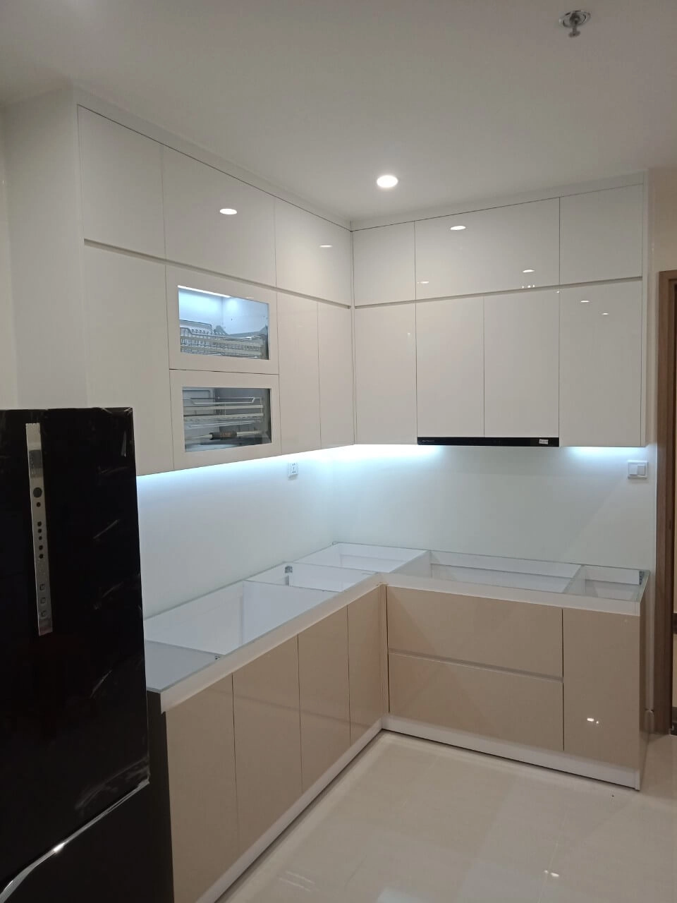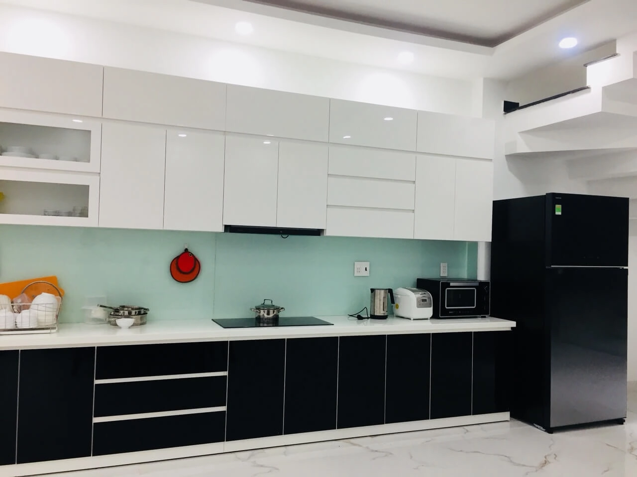 Kính ốp bếp : 1.200.000đ/md (Kính cường lực ốp bếp loại 8mm, Sơn màu theo yêu cầu)