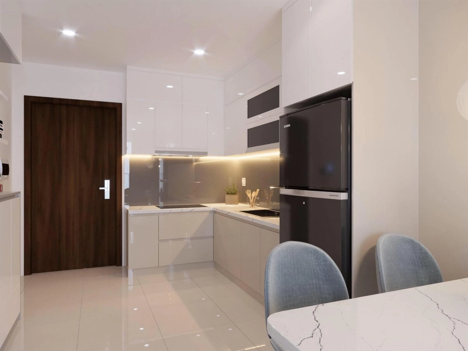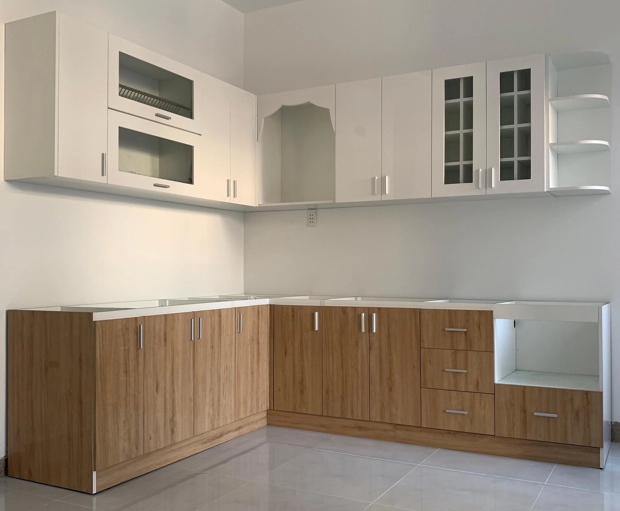 Giá không bao gồm : Phụ kiện tủ bếp, giá xoong nồi, chậu vòi, tay nắm, hộc kéo, đèn led,...như thiết kế.