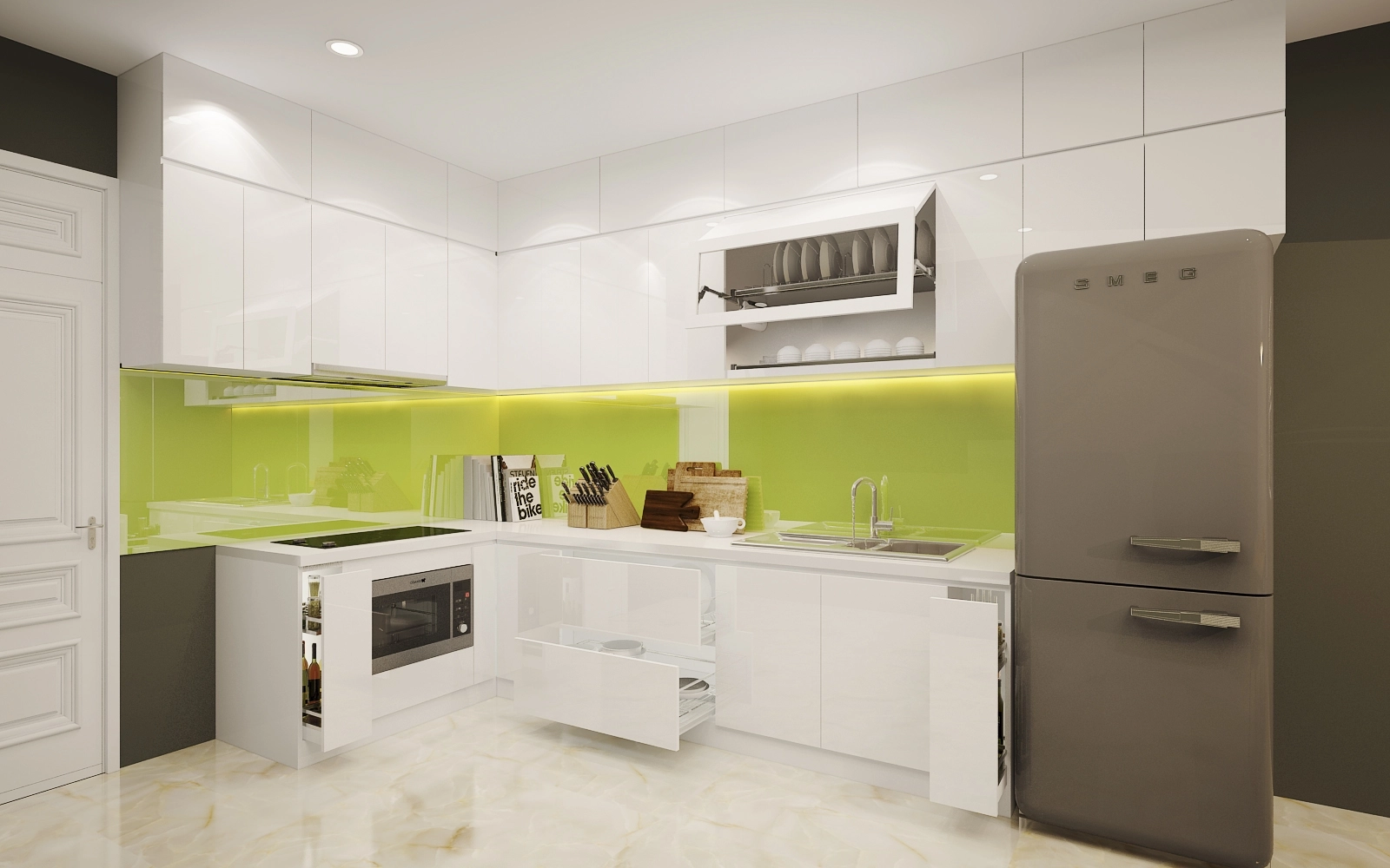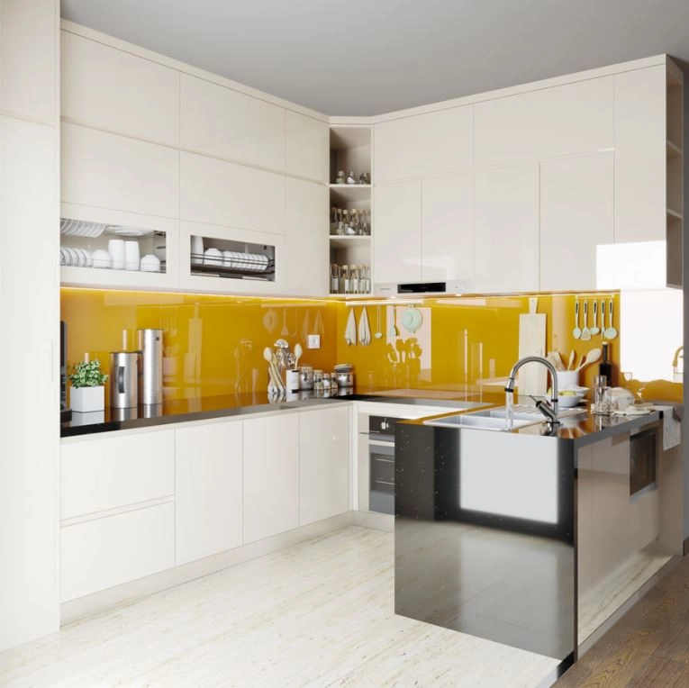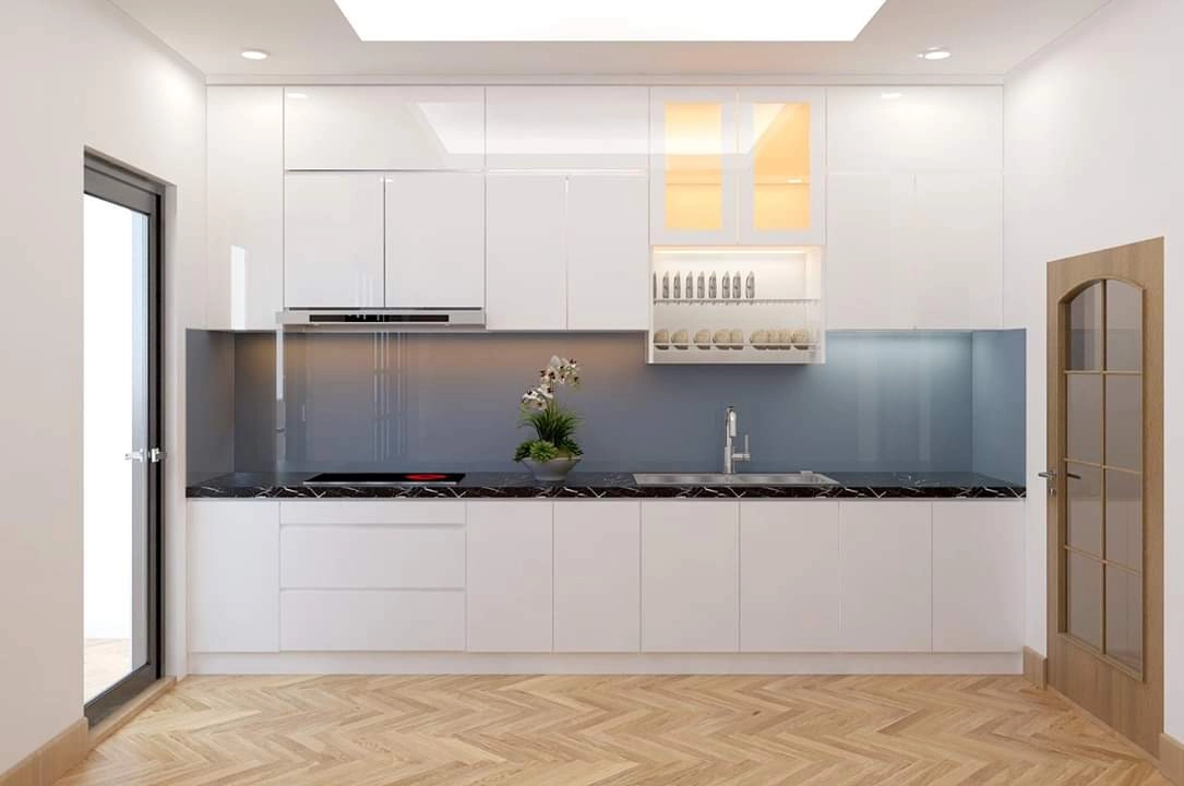 Kính ốp bếp : 1.200.000đ/md (Kính cường lực ốp bếp loại 8mm, Sơn màu theo yêu cầu)