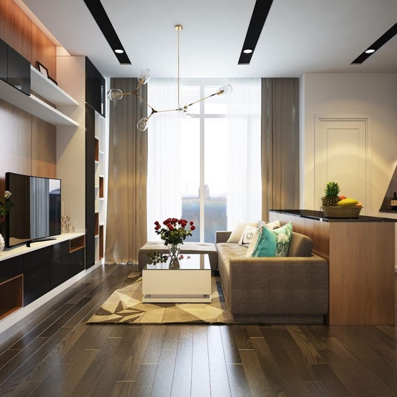 Các gam màu được phối hợp vô cùng sắc sảo tạo nên không gian nội thất hiện đại, quyến rũ và thời thượng. Là một không gian sống thời thượng với đầy đủ tiện nghi hiện đại. Các vật dụng bằng gỗ cao cấp được thiết kế vô cùng nổi bật giúp cho mỗi một không gian căn hộ thêm phần..