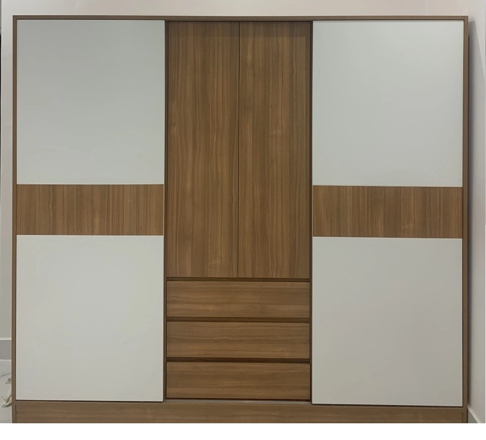 Phụ kiện có sẵn : Cây treo quần áo, ray trượt, lề hơi giảm chấn, tay nắm mặc định, 3 hộc kéo
