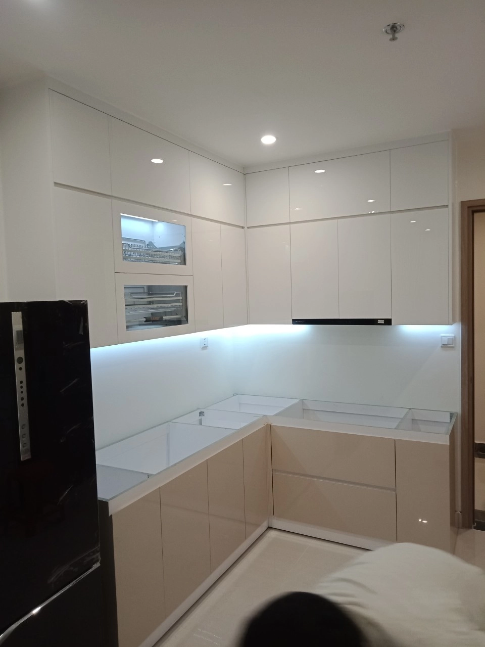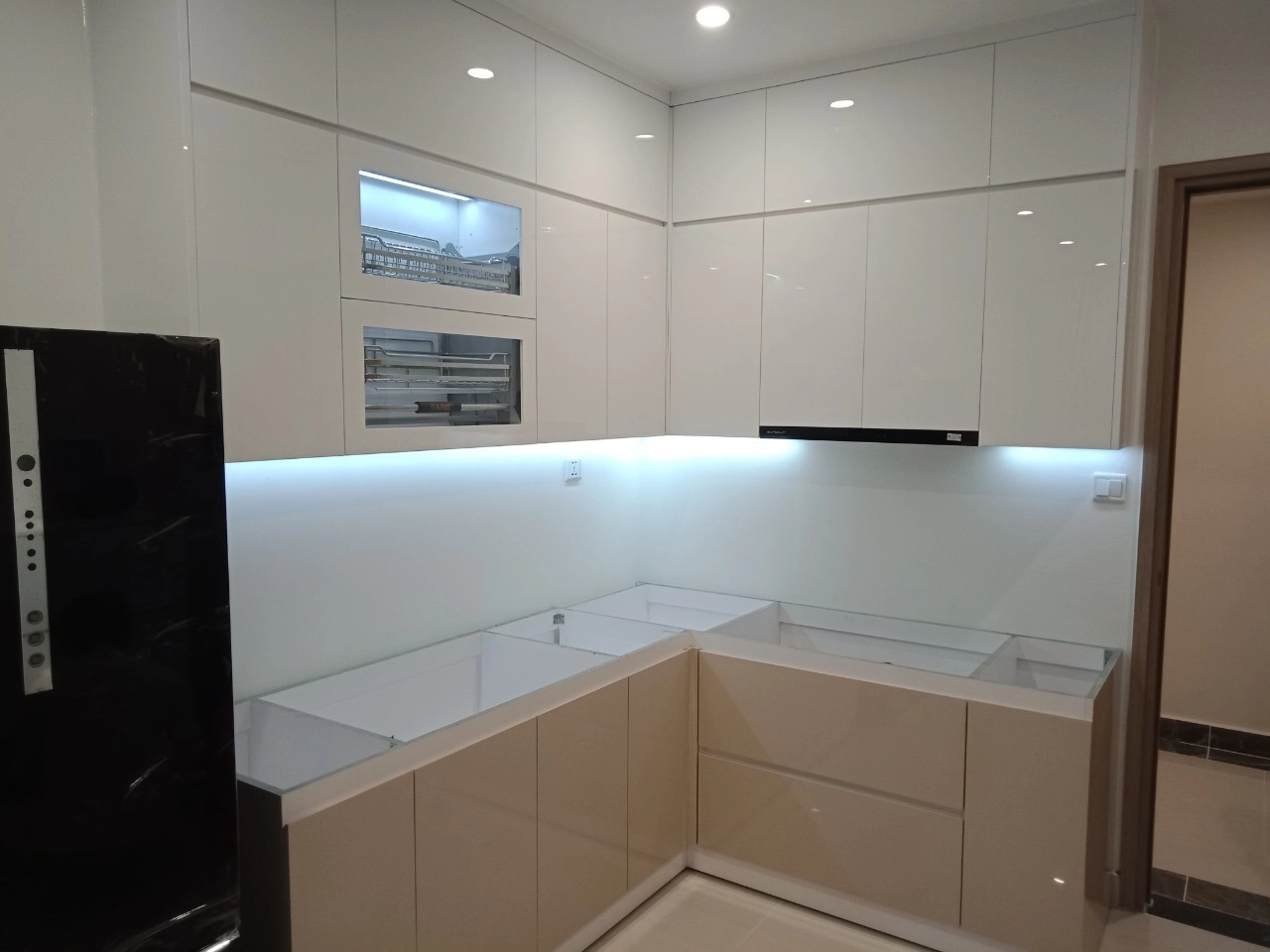 Kính ốp bếp : 1.200.000đ/md (Kính cường lực ốp bếp loại 8mm, Sơn màu theo yêu cầu)