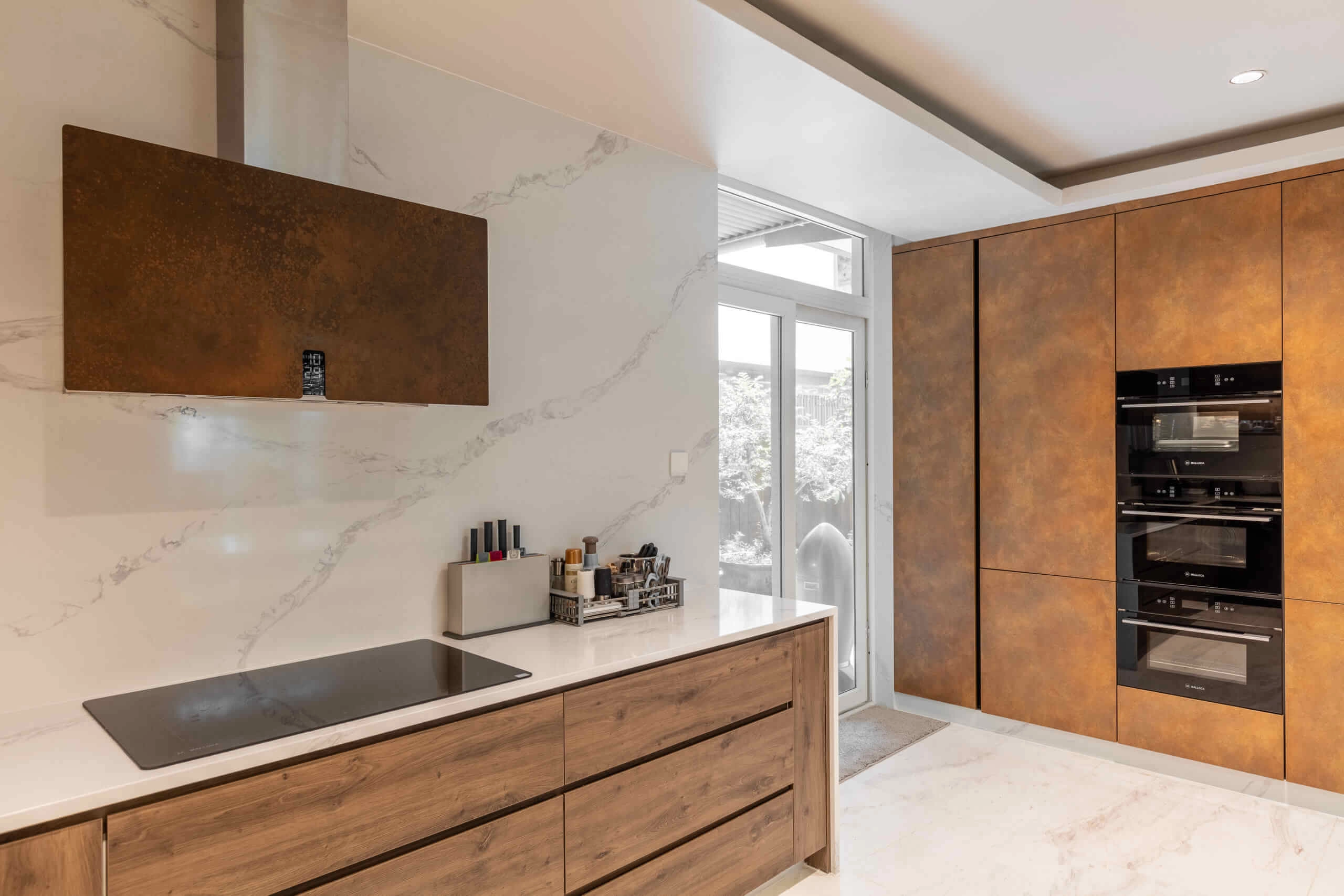 Mỗi căn nhà đều có kết cấu và kích thước khác nhau. Thiết kế và thi công tủ bếp nhằm tạo nên một không gian có sự hài hòa về tổng thể, bố cục, màu sắc, ánh sáng và có công năng sử dụng cao nhất cho không gian bếp. Tủ bếp gỗ Melamine có độ bóng và công dụng tương đối giống với gỗ Laminate. Tuy nhiên, gỗ Melamine có giá thành rẻ hơn so với Laminate.