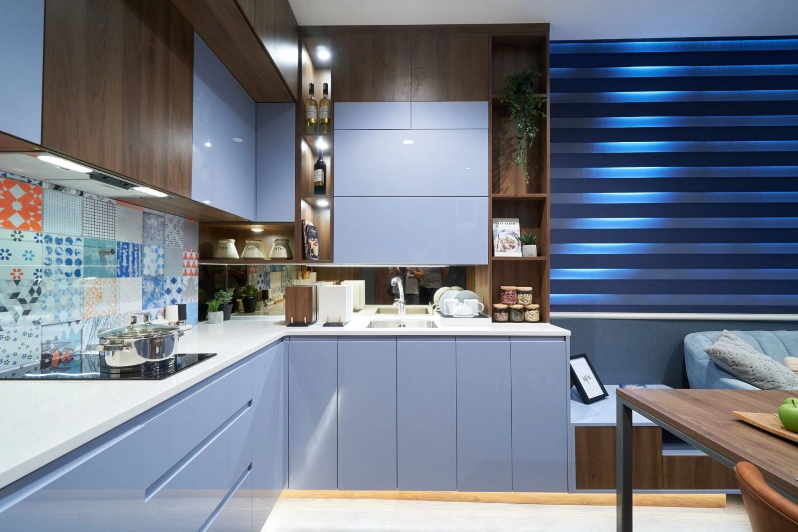 Kính ốp bếp : 1.200.000đ/md (Kính cường lực ốp bếp loại 8mm, Sơn màu theo yêu cầu