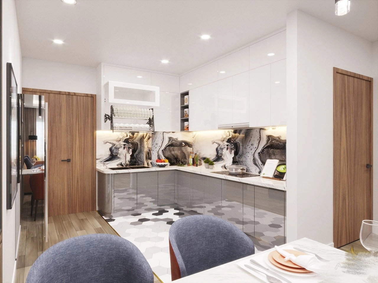 Kính ốp bếp : 1.200.000đ/md (Kính cường lực ốp bếp loại 8mm, Sơn màu theo yêu cầu)