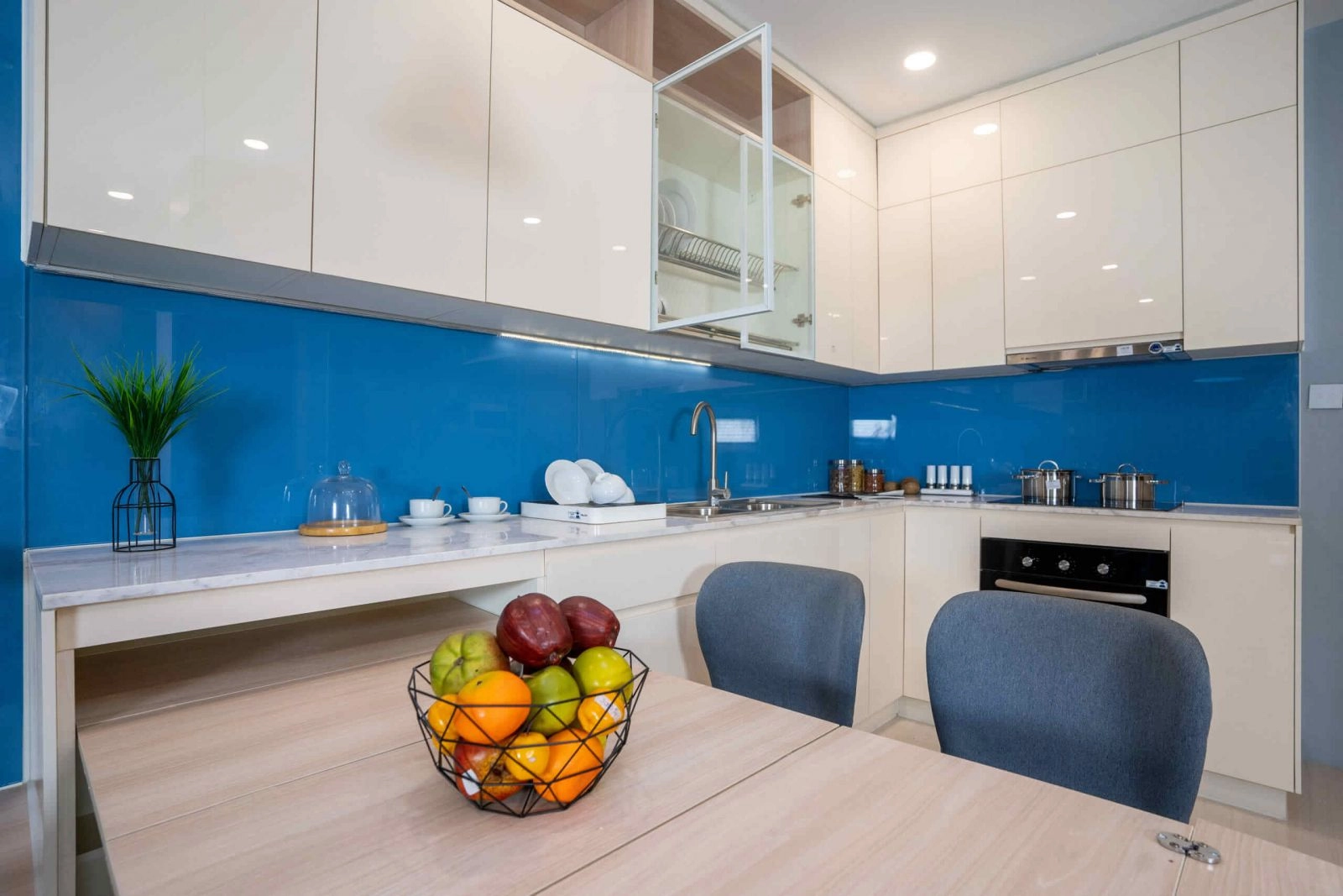 Kính ốp bếp : 1.200.000đ/md (Kính cường lực ốp bếp loại 8mm, Sơn màu theo yêu cầu)